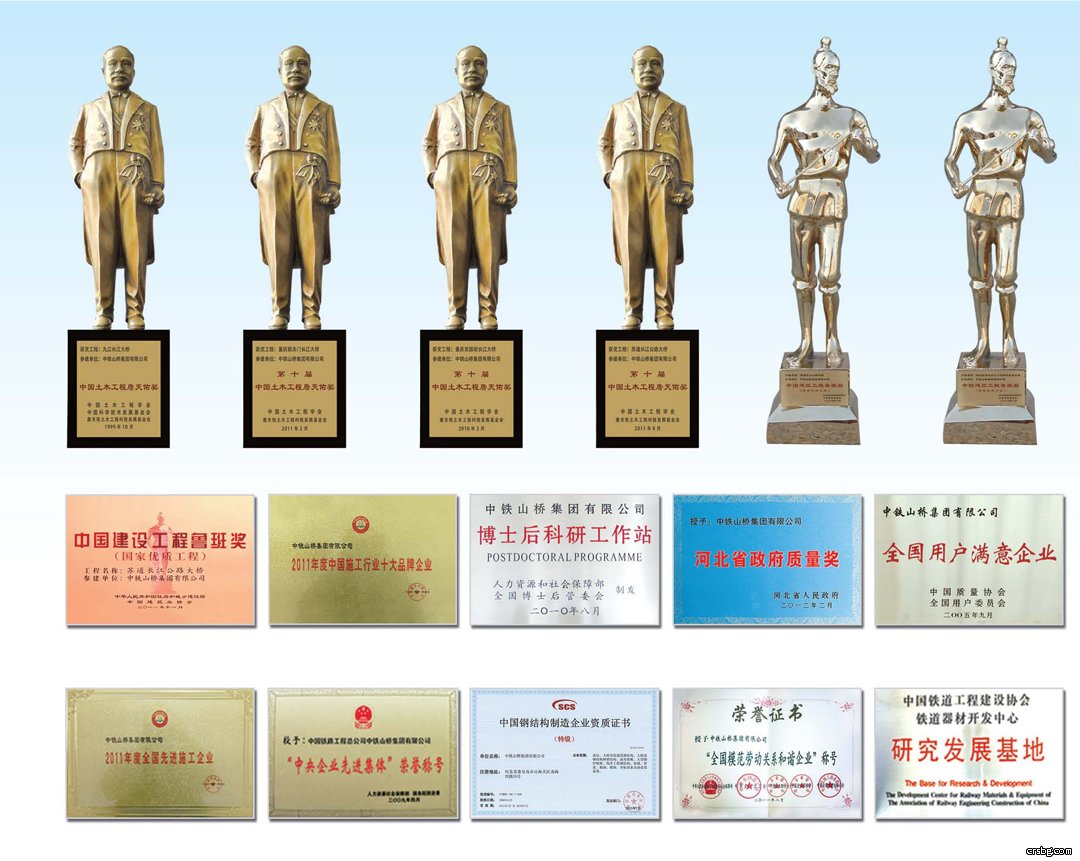 中鐵山橋曾榮獲全國五一勞動獎狀、全國模范勞動關(guān)系和諧企業(yè)、全國先進(jìn)施工企業(yè)、全國質(zhì)量管理先進(jìn)單位、中國施工行業(yè)十大品牌企業(yè)、中央企業(yè)先進(jìn)集體和國家科技進(jìn)步特等獎、國家優(yōu)質(zhì)工程金獎、魯班獎、詹天佑獎。被中組部、河北省委命名為先進(jìn)基層黨組織。