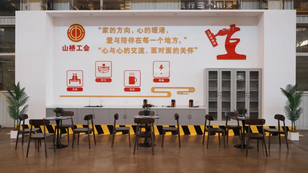 此次建成的 “工間補給站”是中鐵山橋為一線職工謀福祉的重要舉措。中鐵山橋工會經(jīng)過兩個多月的深入調(diào)研、縝密策劃、科學(xué)選址、精心設(shè)計,為職工們打造了安全、健康、舒適的工作環(huán)境,切實提升職工的獲得感、幸福感與安全感,讓大家在緊張忙碌的工作間隙,能夠有效緩解壓力、恢復(fù)體能,進而提高工作效率。
