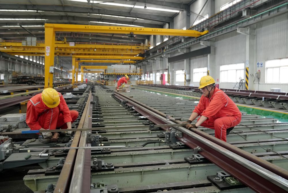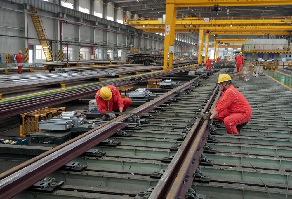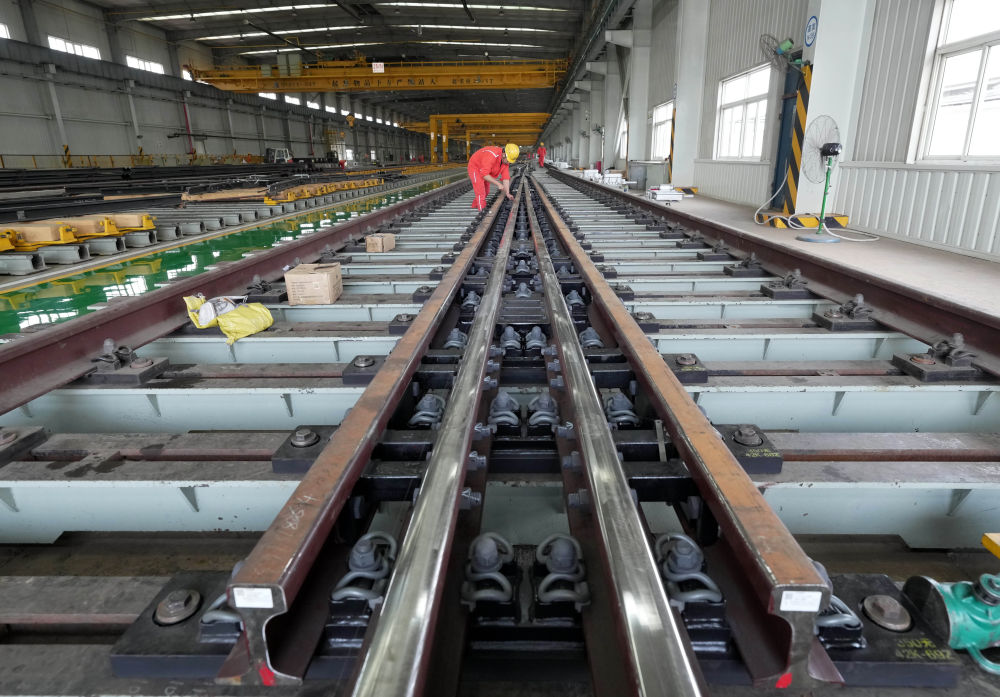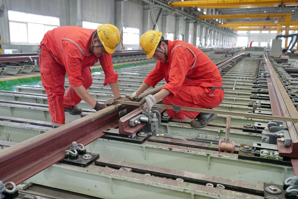 ??↑6月11日,河北省秦皇島市山海關(guān)區(qū)中鐵山橋集團(tuán)有限公司的工人在道岔生產(chǎn)車間工作。 近日,隨著國(guó)內(nèi)一些重要鐵路及地鐵項(xiàng)目有序推進(jìn),承接鐵路道岔生產(chǎn)任務(wù)的河北省秦皇島市山海關(guān)區(qū)中鐵山橋集團(tuán)有限公司生產(chǎn)車間內(nèi)一派繁忙,工人們正保質(zhì)保量加緊生產(chǎn),助力中國(guó)鐵路交通建設(shè)。中鐵山橋始創(chuàng)于1894年,生產(chǎn)的道岔產(chǎn)品遠(yuǎn)銷30多個(gè)國(guó)家和地區(qū)。 新華社記者 楊世堯 攝